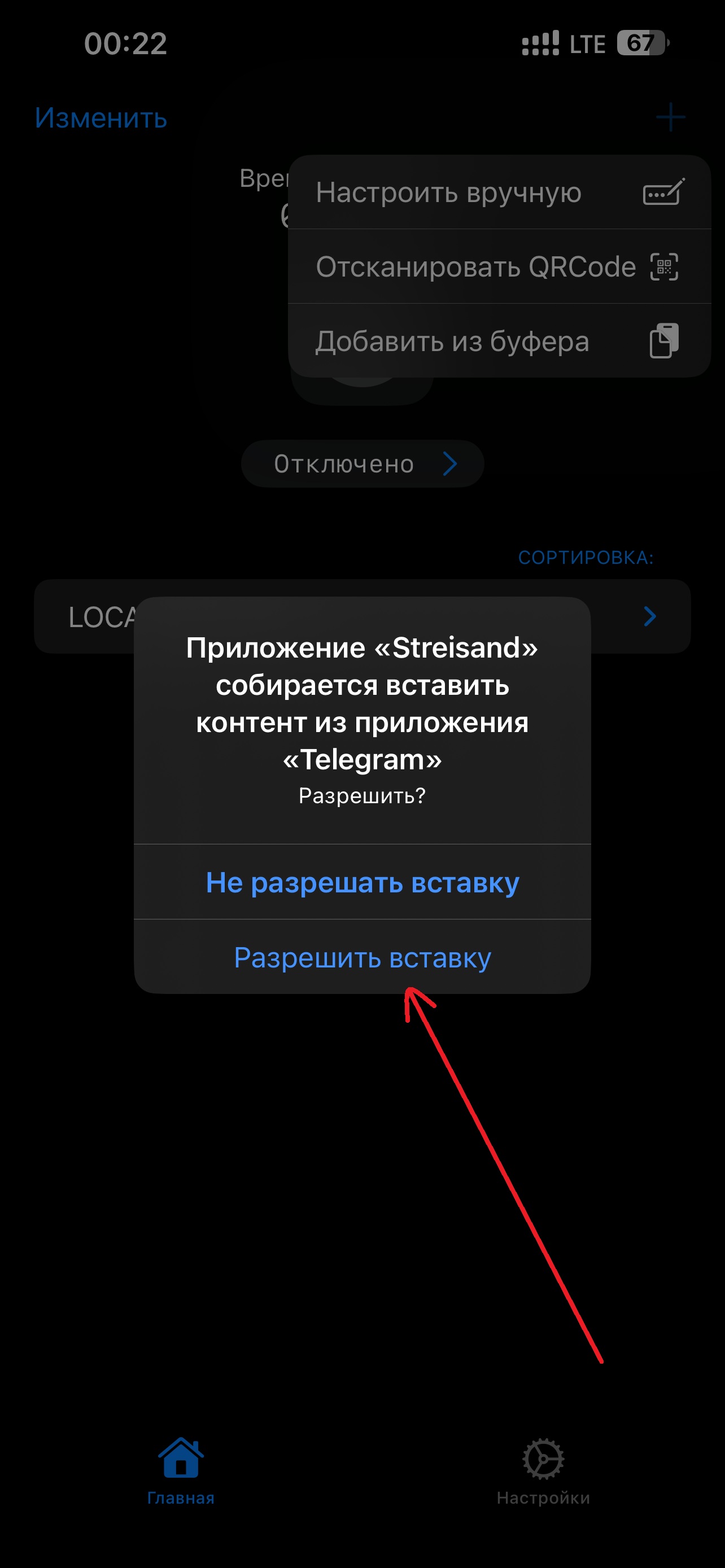 После того как вы вставите ссылку на подписку в программу, вернитесь на главный экран Streisand.