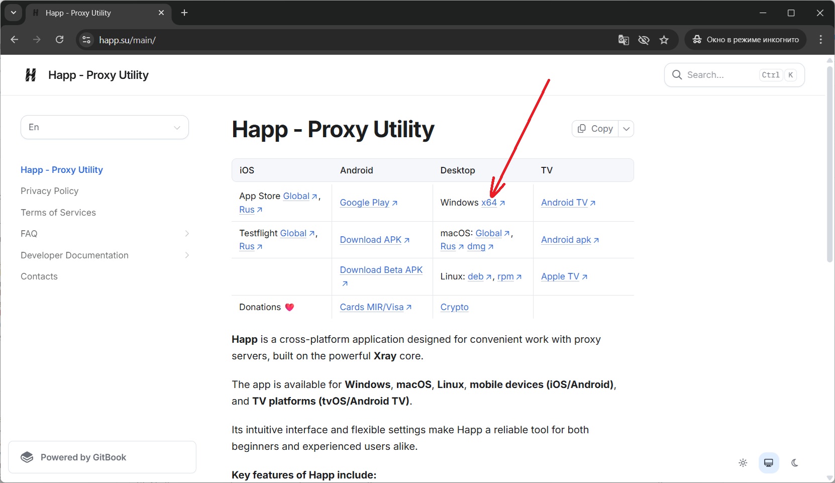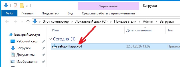 Скачать по прямой ссылке setup-Happ.x64.exe