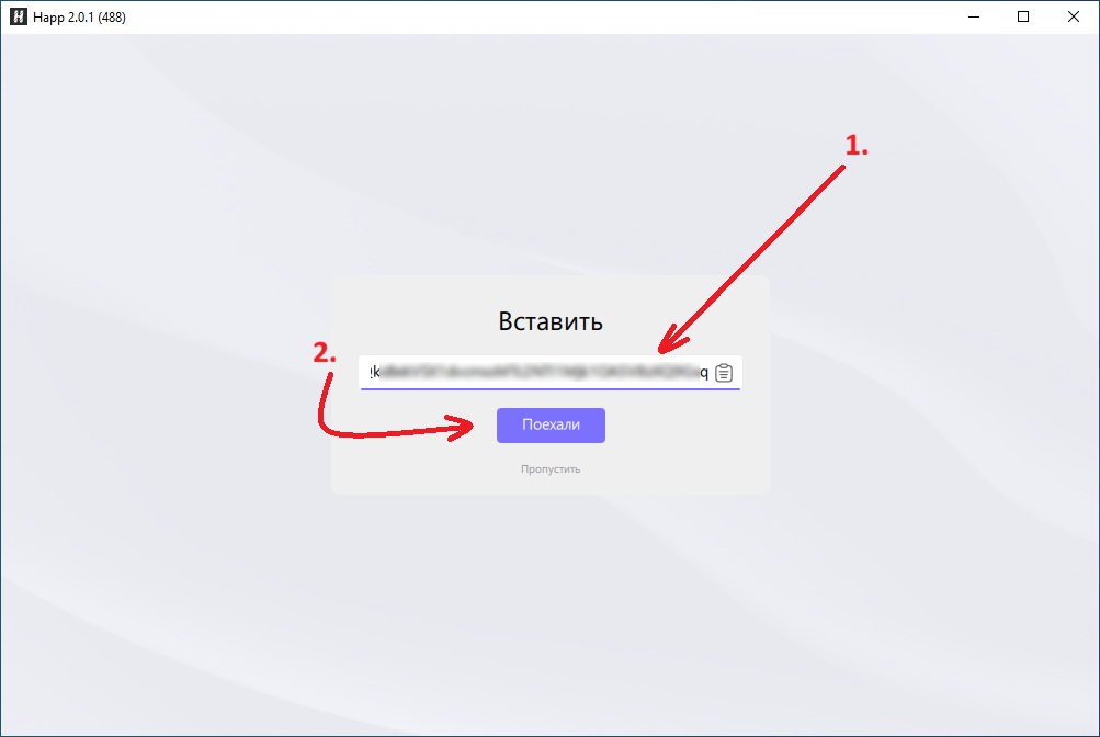 Вставьте ссылку подписки, который вы скопировали ранее, и нажмите Поехали.
