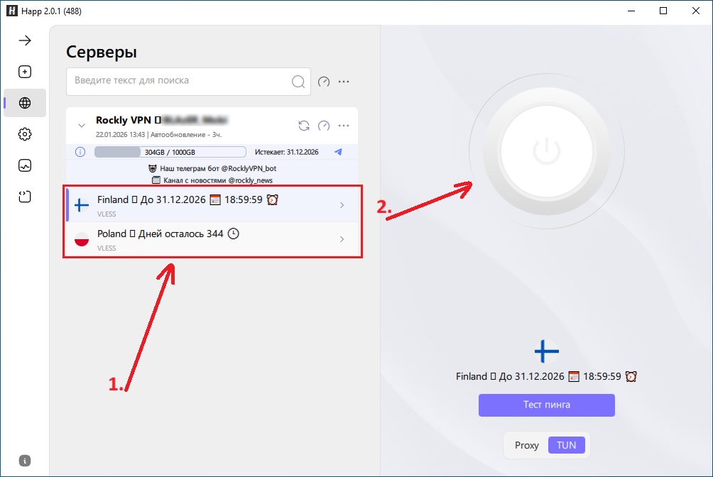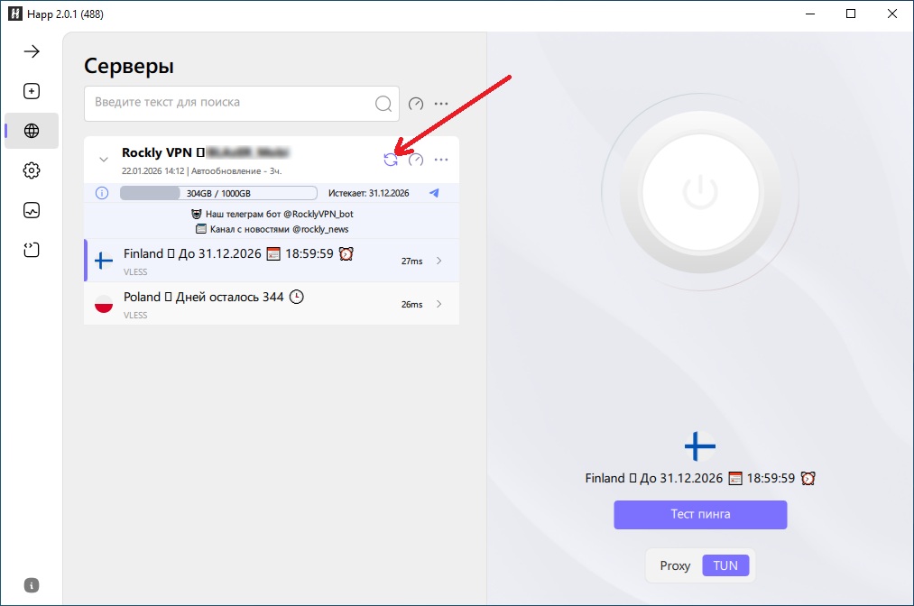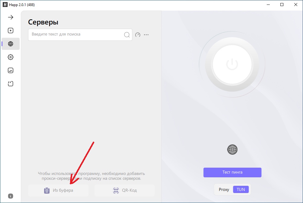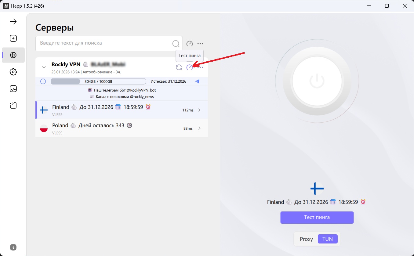 1) Запустите программу и выключите VPN (круглая кнопка)
