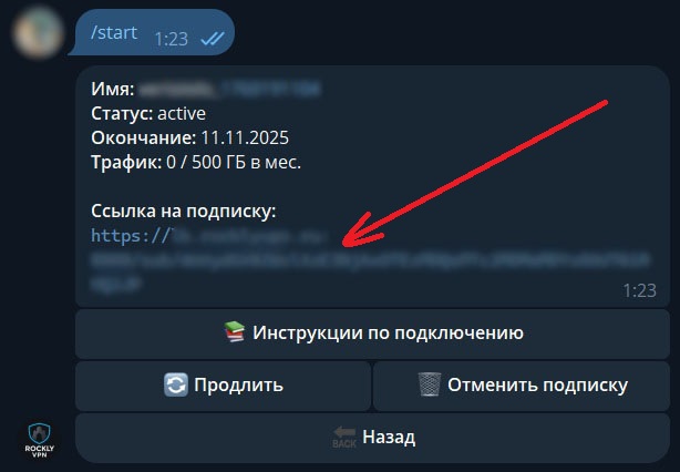 В телеграмм боте скопируйте ссылку на подписку (доступна после оплаты).
